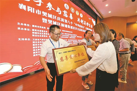 9月5日是我國第八個“中華慈善日”。當日,由樊城區民政局等單位主辦的“攜手參與慈善 共創美好生活”2023年樊城區柿鋪街道“中華慈善日”宣傳活動暨“樊城區柿鋪街道社區公益基金”啟動儀式舉行。活動現場,區民政局向柿鋪街道授予“柿鋪街道·社區公益基金”牌匾,萬洲電氣股份有限公司、湖北諾伯特科技有限公司等公司捐贈...